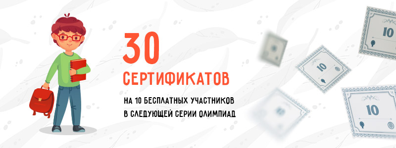 Современный учитель – это профессионал, который постоянно стремится к успеху сам и способен привести к успеху своих учеников. Чтобы поощрить самых активных педагогов, мы подготовили 30 сертификатов на 10 бесплатных участников в следующей серии олимпиад.