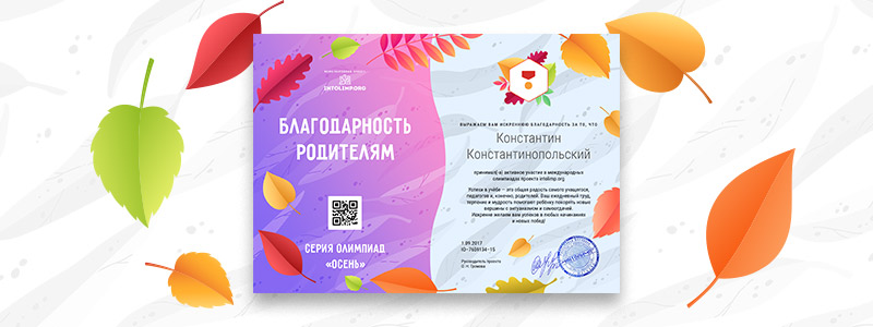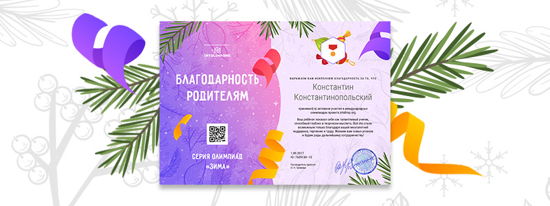 Родители – главные помощники школы в деле воспитания и обучения молодого поколения. Благодаря их ежедневному труду, любви и терпению ребята и добиваются успехов. Именно поэтому мы направляем благодарственные письма всем родителям учеников, которые участвуют в олимпиадах нашего проекта.