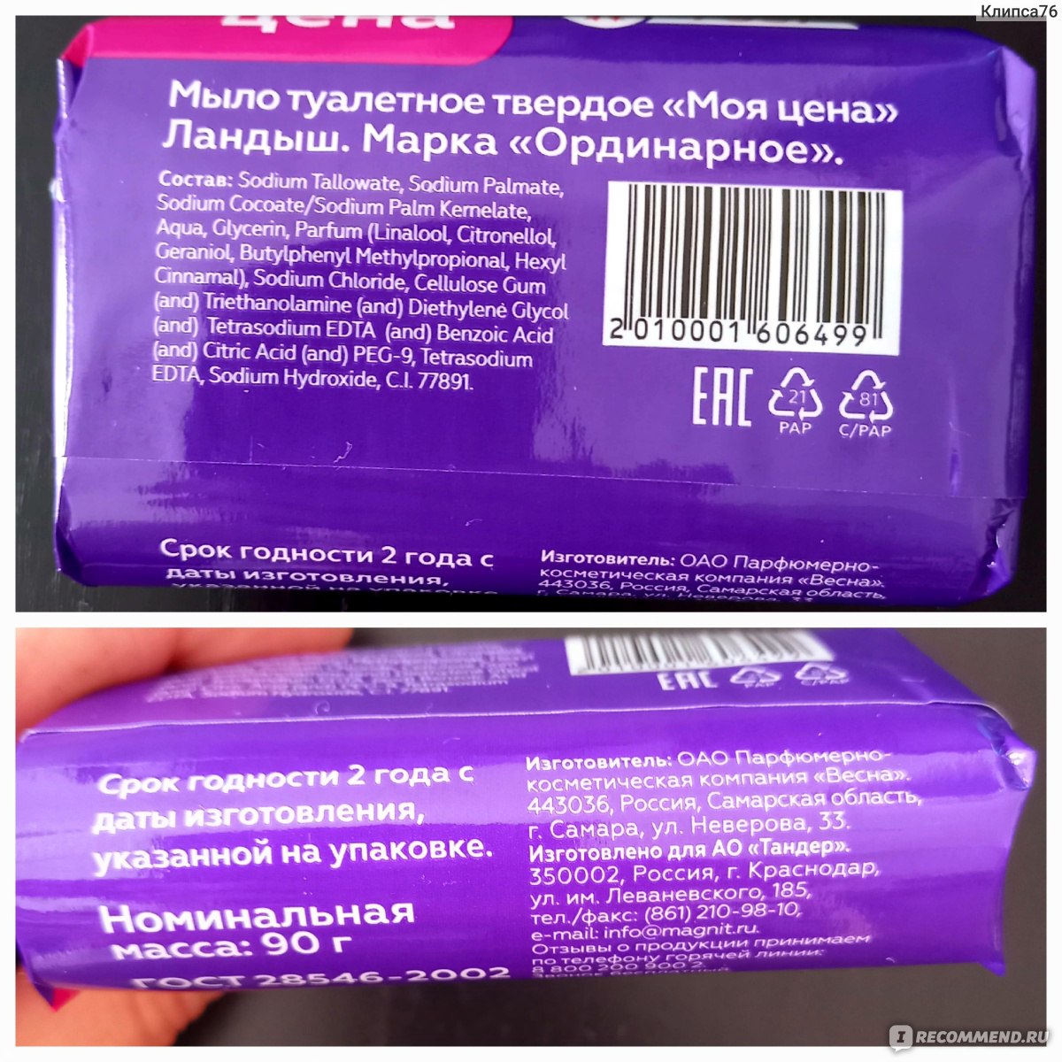 - наименование продукта, для мыла, выпущенного в соответствии с ГОСТ, указывается марка; - - изготовитель и его адрес (юридический адрес, включая страну);