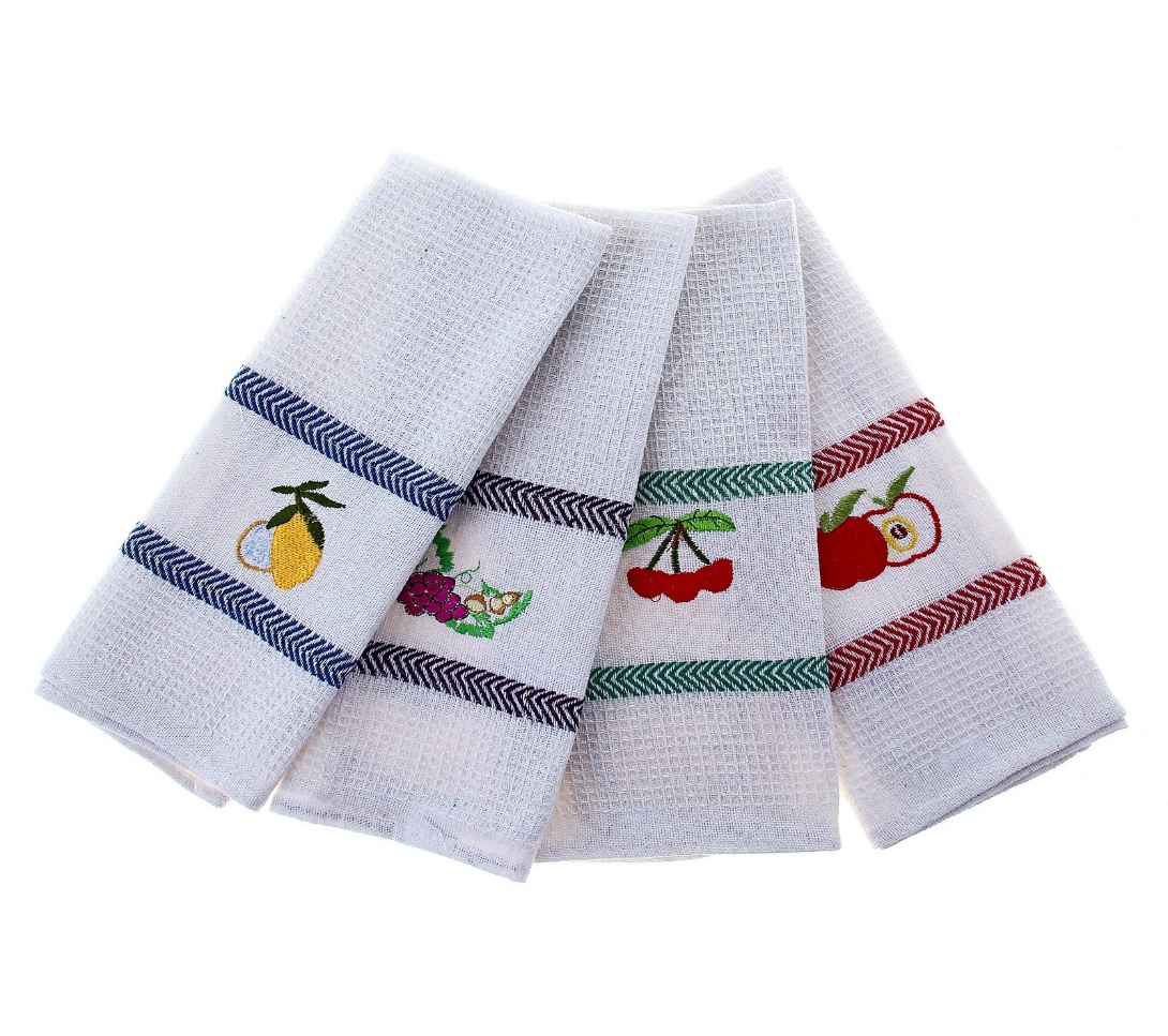 По размеру полотенце должно быть средним. Важно, чтобы оно было удобно в использовании. Кроме того, поскольку кухонные полотенца быстро пачкаются и их приходится часто стирать, то удобней это делать с изделиями среднего размера.