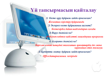 | Сабақтың мақсаты | Білімділік: Оқушыларды кестелерді түзету, пішімдеу әдістерімен таныстыру. Тәрбиелілік: Оқушыларды тәрбиелікке, ұқыптылыққа,тиянақтылыққа үйрету. Дамытушылық: Оқушылардың ойлау қабілетін, логикалық-абстракциясын дамыту. | |||||
