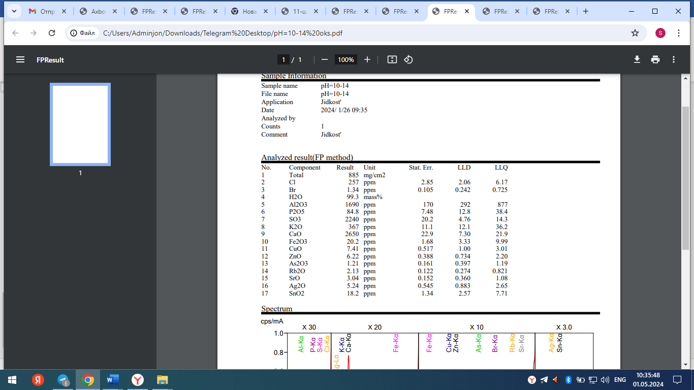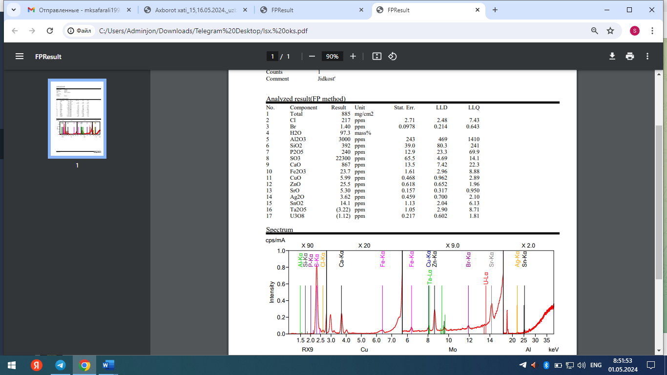 Suvning dastlabki tarkibi rentgen fazaviy taxlil natijalari