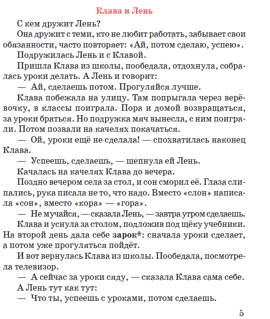 Формировать представления детей о произведениях «Клава и лень». Продолжать формировать умение отвечать на вопросы по тексту, бегло, правильно, осознанно читать.
