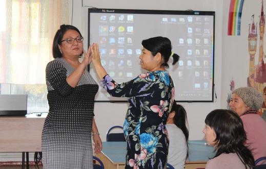 | Қатысушылар жанында отырған көршісімен әр саусақтарын кезекпен түйістіріп, мына сөздерді айтып сәлемдеседі.