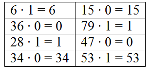Работают с новыми видами примеров, учатся умножать числа на 1.