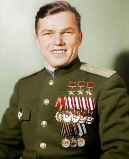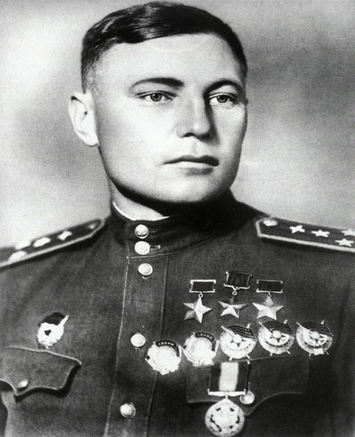 | На фотографии знаменитый летчик. За время Великой Отечественной войны он совершил 330 боевых вылетов и сбил 64 вражеских самолёта — больше, чем лётчики всех остальных стран антигитлеровской коалиции. За эти и прочие заслуги перед страной он трижды был удостоен звания Героя Советского Союза. Кто это?