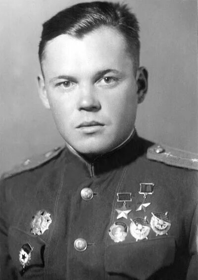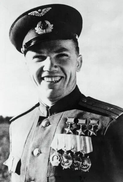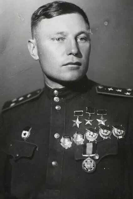 | Александр Иванович Покрышкин (6 (19) марта 1913, Ново-Николаевск, Томская губерния, Российская империя — 13 ноября 1985, Москва, СССР) — советский военачальник и лётчик-ас в годы Великой Отечественной войны, маршал авиации (1972). Первый трижды Герой Советского Союза (24.05.1943, 24.08.1943, 19.08.1944). Во время войны Покрышкин совершил свыше 600 боевых вылетов, провёл 156 воздушных боёв, в которых сбил лично 59 (по неофициальным данным, 75) и в группе 6 самолётов противника. После войны Покрышкин служил на командных должностях в ПВО, а в 1968 году стал заместителем главнокомандующего Войск ПВО страны. В 1972–1981 годах Александр Иванович занимал пост председателя ДОСААФ СССР, а затем вплоть до самой смерти был военным инспектором-советником Группы генеральных инспекторов Министерства обороны СССР. |