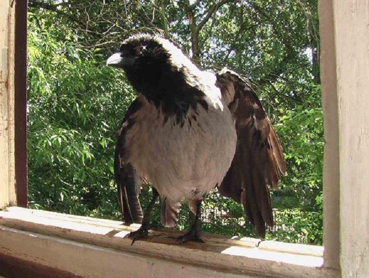 Петя от неожиданности вздрогнул и поднял голову: по подоконнику важно прохаживался Ворон. Он долго наблюдал за Петей.