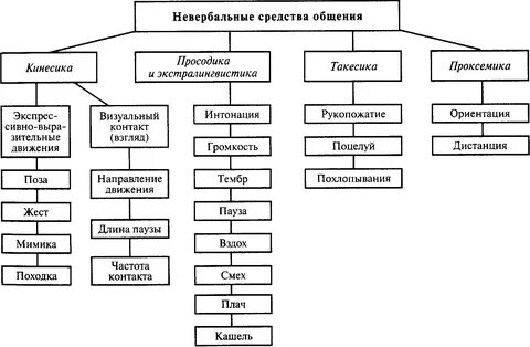 Кинесика — язык тела, движения головы и тела, осанку, движение глаз и зрительный контакт.