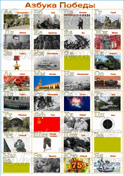 Цель пособия: патриотическое воспитание; закрепление знаний о празднике День Победы; обучение грамоте.